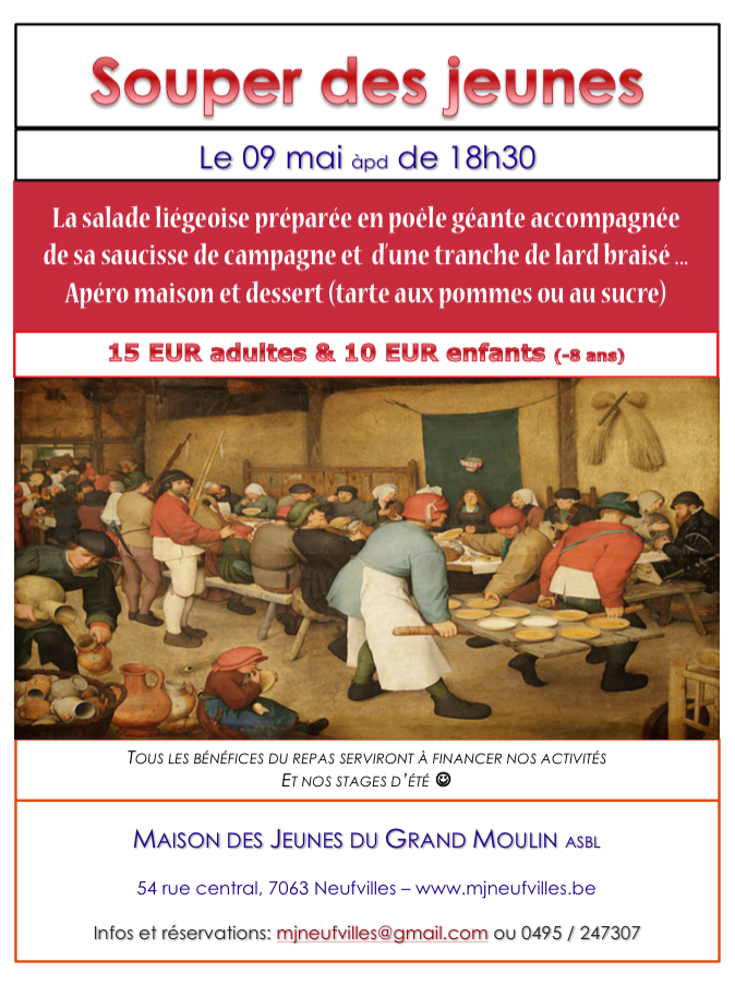 La Maison des Jeunes du Grand Moulin, située à Neufvilles, est une ASBL pluraliste et indépendante fondée en 1976 et reconnue par la Fédération Wallonie-Bruxelles. Elle bénéficie de plus de l'aide de la commune de Soignies pour les locaux. La MJ du Grand Moulin fait partie du réseau MJ Music, du collectif MJ Centre, de la FMJ (fédération) et de la coordination ATL (Accueil Temps Libre) de la ville de Soignies. Voir plus d’articles