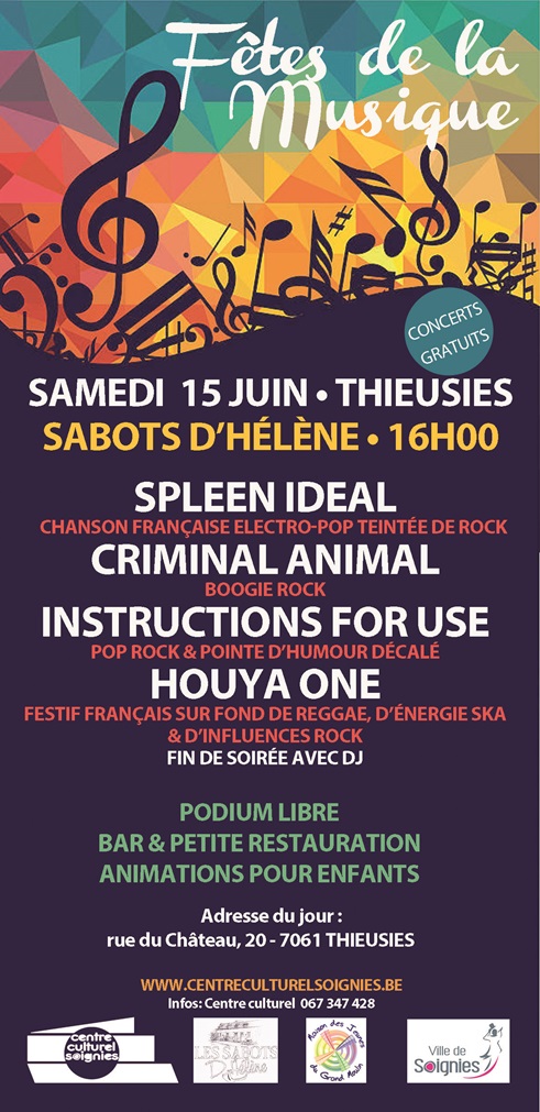- Juin 2015 / Fête de la musique à Thieusies (Partenariat / Centre Culturel / Hirsute / Sabots d’Hélène)