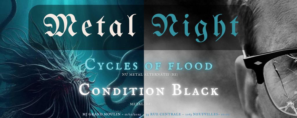 11/10 : Cycles of Flood (NU-METAL BE) + Condition Black (METAL- BE) Metal Night, deuxième édition. CONDITION BLACK sont de la région de MONS. C’est du métal mais qui ne se contraint pas à un seul style.